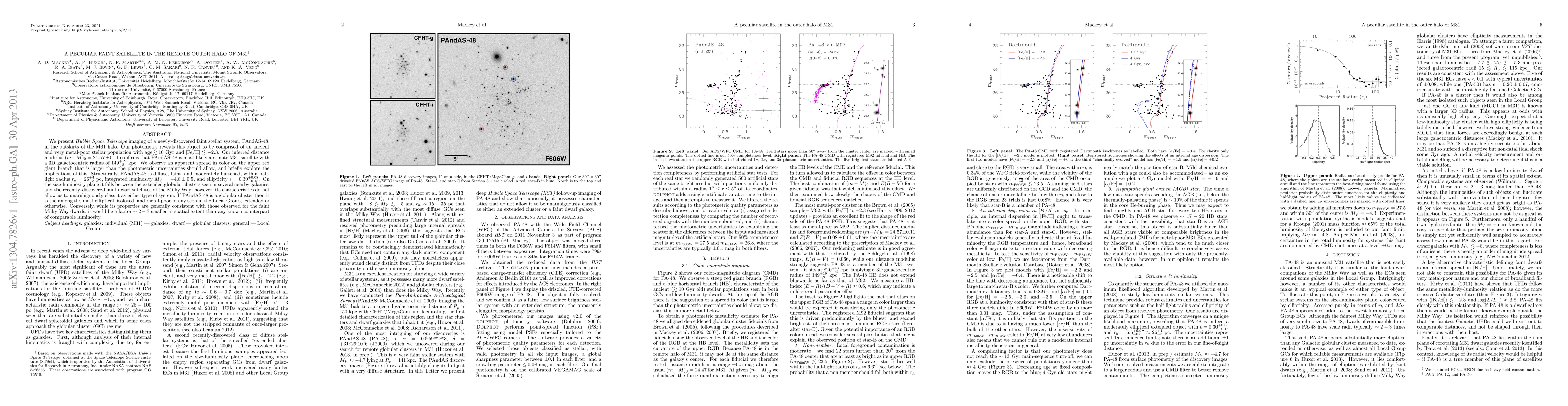 We present Hubble Space Telescope imaging of a newly-discovered faint stellar system, PAndAS-48, in the outskirts of the M31 halo. Our photometry reveals this object to be comprised of an ancient and very metal-poor stellar population with age > 10 Gyr and [Fe/H] < -2.3. Our inferred distance modulus of 24.57 +/- 0.11 confirms that PAndAS-48 is most likely a remote M31 satellite with a 3D galactocentric radius of 149 (+19 -8) kpc. We observe an apparent spread in color on the upper red giant branch that is larger than the photometric uncertainties should allow, and briefly explore the implications of this. Structurally, PAndAS-48 is diffuse, faint, and moderately flattened, with a half-light radius rh = 26 (+4 -3) pc, integrated luminosity Mv = -4.8 +/- 0.5, and ellipticity = 0.30 (+0.08 -0.15). On the size-luminosity plane it falls between the extended globular clusters seen in several nearby galaxies, and the recently-discovered faint dwarf satellites of the Milky Way; however, its characteristics do not allow us to unambiguously class it as either type of system. If PAndAS-48 is a globular cluster then it is the among the most elliptical, isolated, and metal-poor of any seen in the Local Group, extended or otherwise. Conversely, while its properties are generally consistent with those observed for the faint Milky Way dwarfs, it would be a factor ~2-3 smaller in spatial extent than any known counterpart of comparable luminosity.