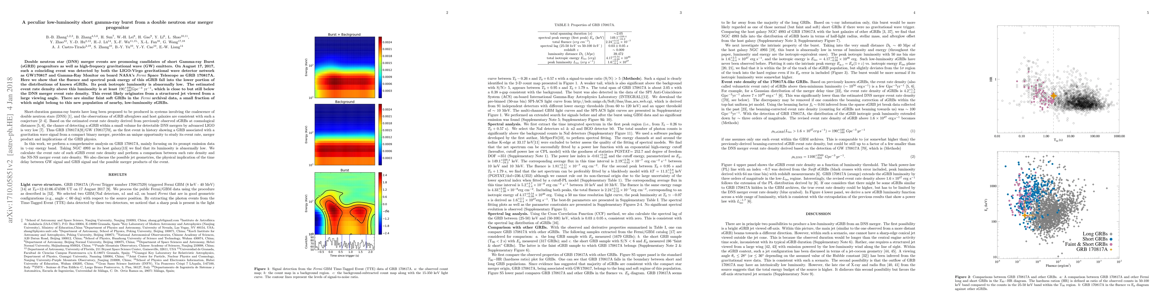 A 2017 gravitational wave detection revealed a low-luminosity gamma-ray burst likely originating from a double neutron star merger, with an unusually low peak isotropic luminosity.