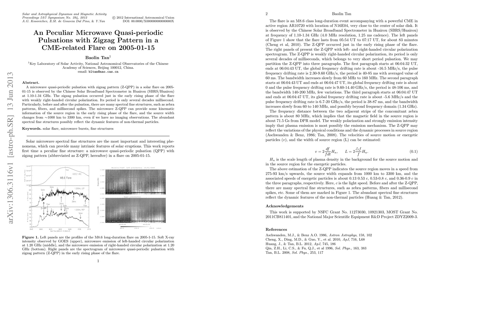 This paper reports the first observation of a peculiar microwave quasi-periodic pulsation with a zigzag pattern (Z-QPP) in a solar flare on 2005-01-15, detected by the Chinese Solar Broadband Spectrometer. The Z-QPP provides kinematic information about the source region and indicates dynamic features of non-thermal particles.
