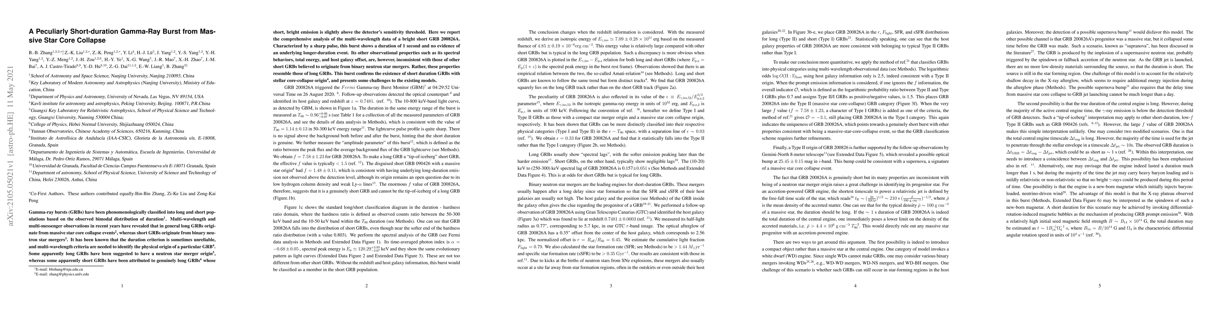 This paper reports a short-duration gamma-ray burst (GRB) 200826A with a duration of 1 second, challenging the conventional classification of GRBs based on duration. Despite its short duration, the burst's properties align more closely with long GRBs from massive star core collapses, suggesting complexities in GRB classification.