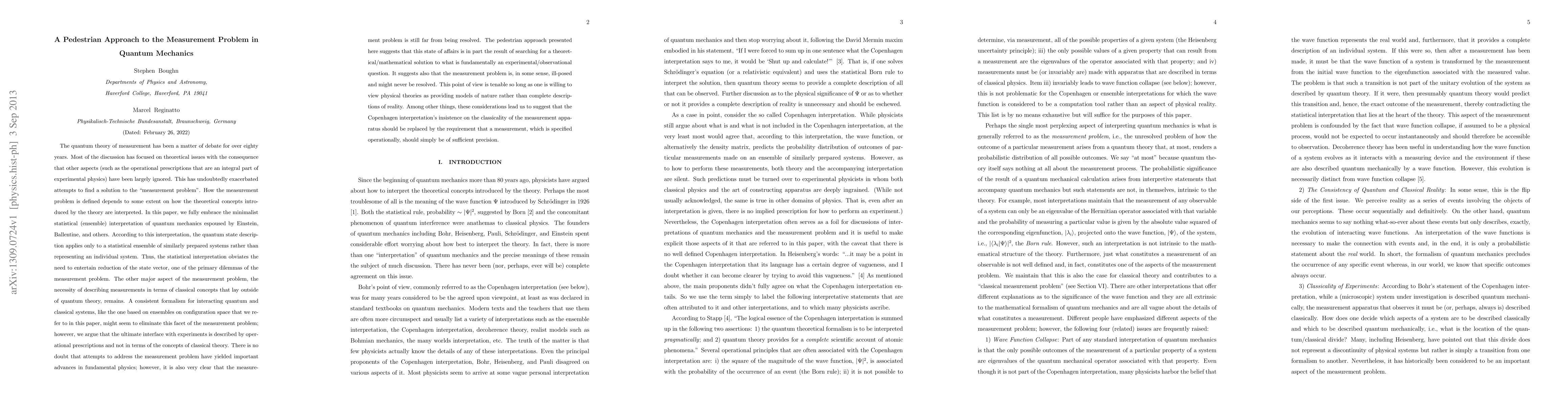 This paper argues that the measurement problem in quantum mechanics is fundamentally an experimental issue rather than a theoretical one, suggesting that operational prescriptions are more relevant than classical concepts. It proposes that the ensemble interpretation of quantum mechanics can bypass the need for state vector reduction, thus offering a pedestrian approach to the measurement problem.