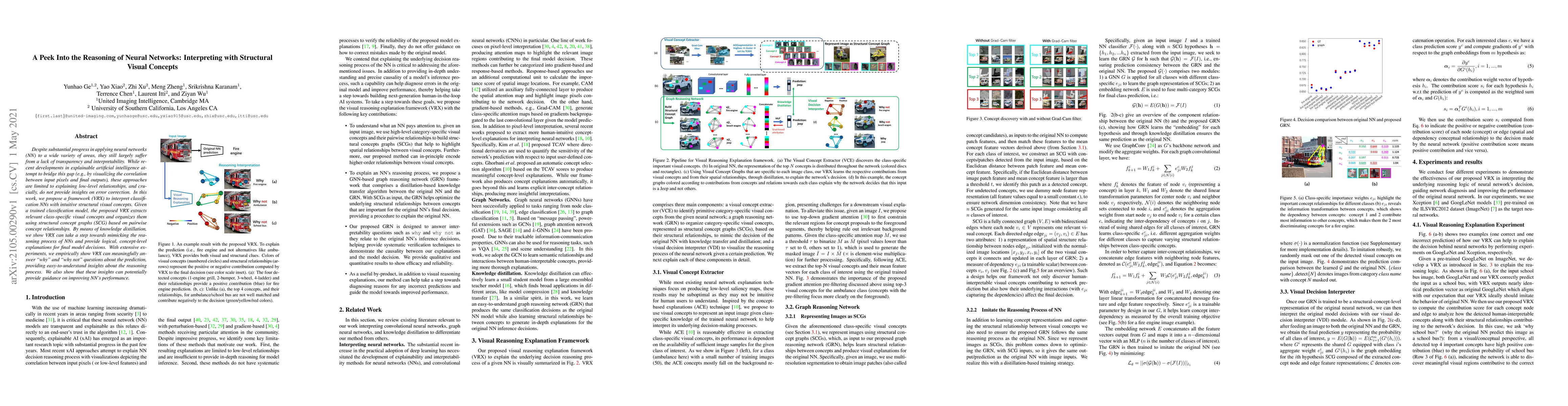Despite substantial progress in applying neural networks (NN) to a wide variety of areas, they still largely suffer from a lack of transparency and interpretability. While recent developments in explainable artificial intelligence attempt to bridge this gap (e.g., by visualizing the correlation between input pixels and final outputs), these approaches are limited to explaining low-level relationships, and crucially, do not provide insights on error correction. In this work, we propose a framework (VRX) to interpret classification NNs with intuitive structural visual concepts. Given a trained classification model, the proposed VRX extracts relevant class-specific visual concepts and organizes them using structural concept graphs (SCG) based on pairwise concept relationships. By means of knowledge distillation, we show VRX can take a step towards mimicking the reasoning process of NNs and provide logical, concept-level explanations for final model decisions. With extensive experiments, we empirically show VRX can meaningfully answer "why" and "why not" questions about the prediction, providing easy-to-understand insights about the reasoning process. We also show that these insights can potentially provide guidance on improving NN's performance.