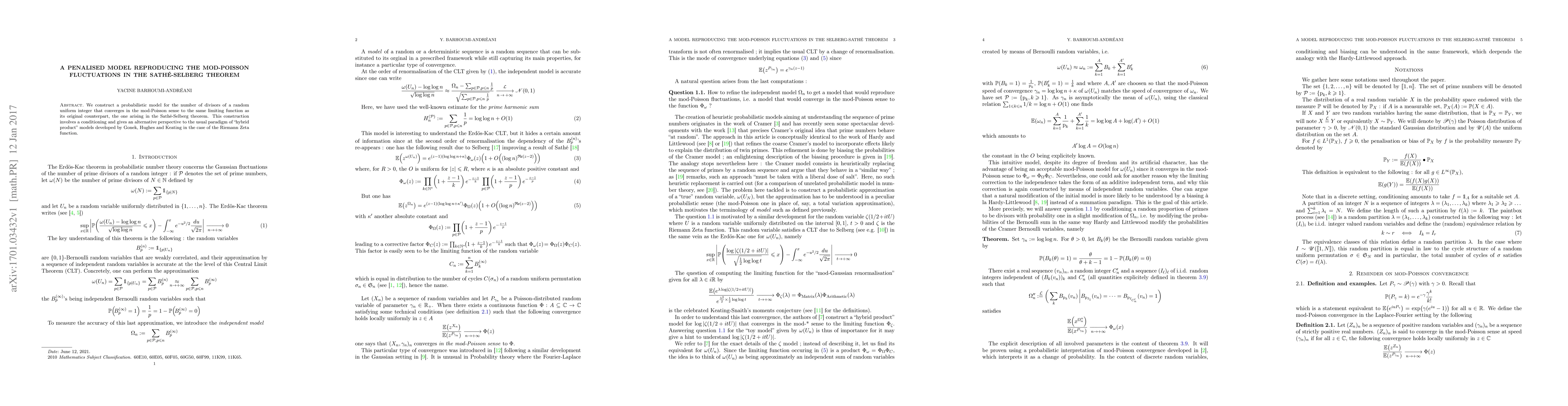 We construct a probabilistic model for the number of divisors of a random uniform integer that converges in the mod-Poisson sense to the same limiting function as its original counterpart, the one arising in the Sathe-Selberg theorem. This construction involves a conditioning and gives an alternative perspective to the usual paradigm of "hybrid product" models developed by Gonek, Hughes and Keating in the case of the Riemann Zeta function.