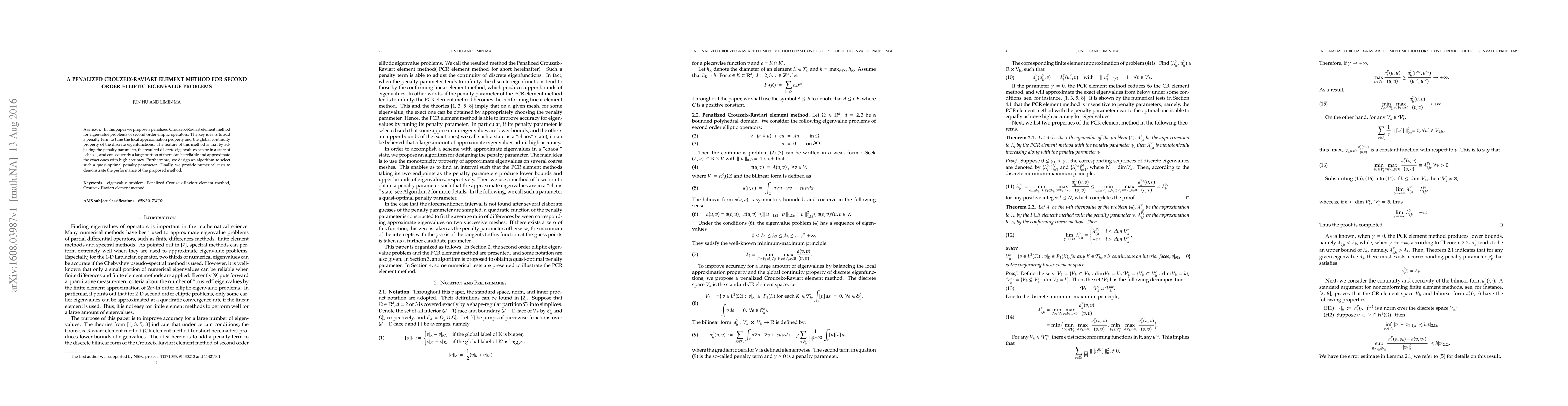 This paper introduces a penalized Crouzeix-Raviart element method for solving second order elliptic eigenvalue problems, enhancing the method by adding a penalty term to improve approximation and continuity. The authors demonstrate that adjusting the penalty parameter can lead to reliable discrete eigenvalues approximating the exact ones accurately, and they propose an algorithm to find an optimal penalty parameter, supported by numerical tests.