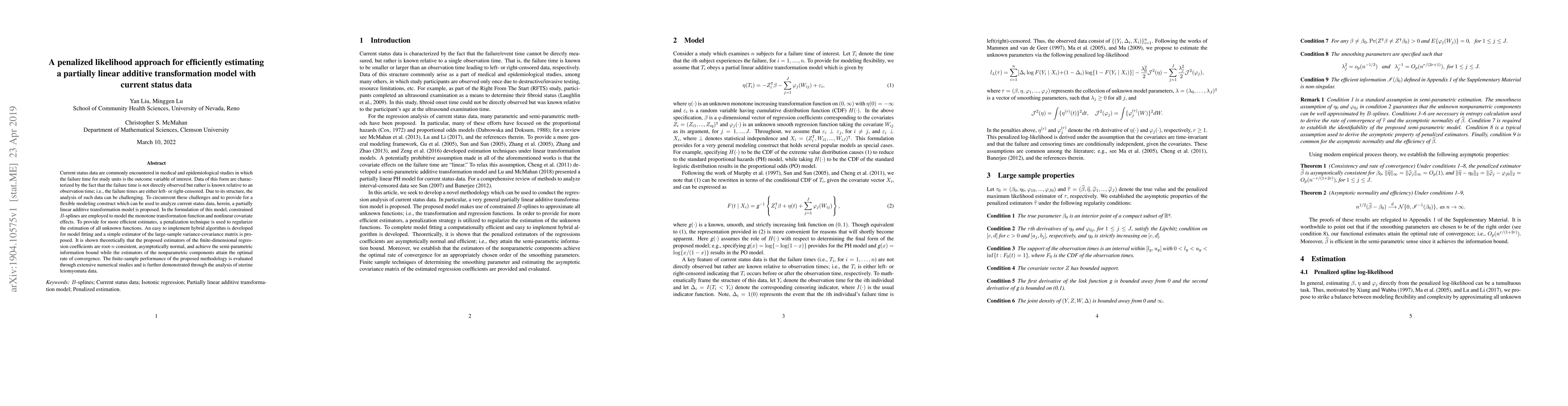 Researchers propose a new method to analyze current status data in medical studies using a partially linear additive transformation model, which efficiently estimates parameters while achieving root-$n$ consistency and asymptotic normality.