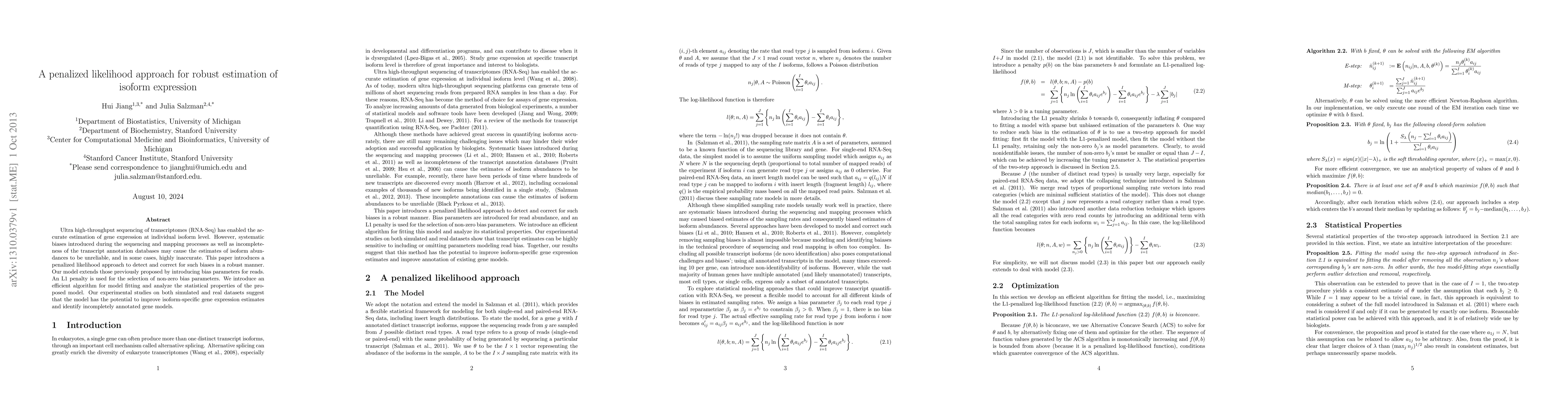 This paper proposes a penalized likelihood approach to robustly estimate isoform expression from RNA-Seq data, addressing biases from sequencing and incomplete annotations. The model uses an L1 penalty for bias parameter selection and an efficient fitting algorithm, showing improved accuracy in experimental studies.