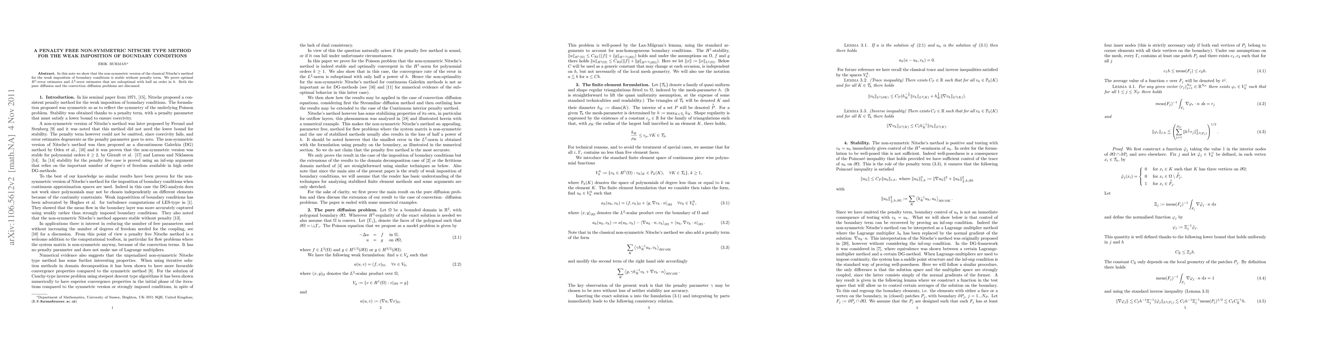 Researchers developed a penalty-free non-symmetric Nitsche method for weakly imposing boundary conditions, achieving optimal H^1-error estimates without penalty terms.