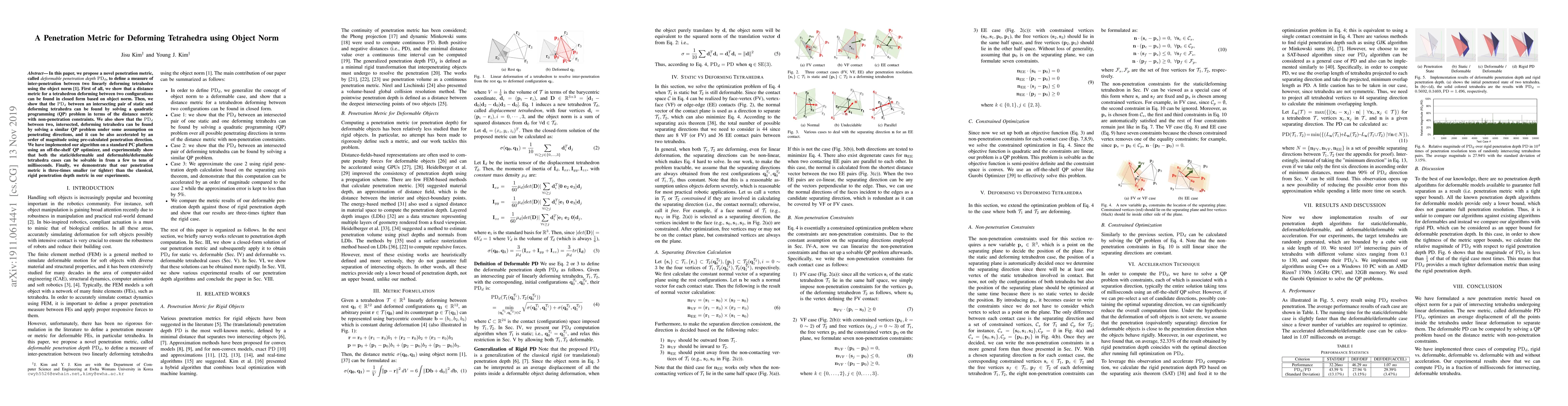 The paper presents a new penetration metric, PDd, and an efficient QP-based algorithm to compute it for deforming tetrahedra, along with an acceleration technique.