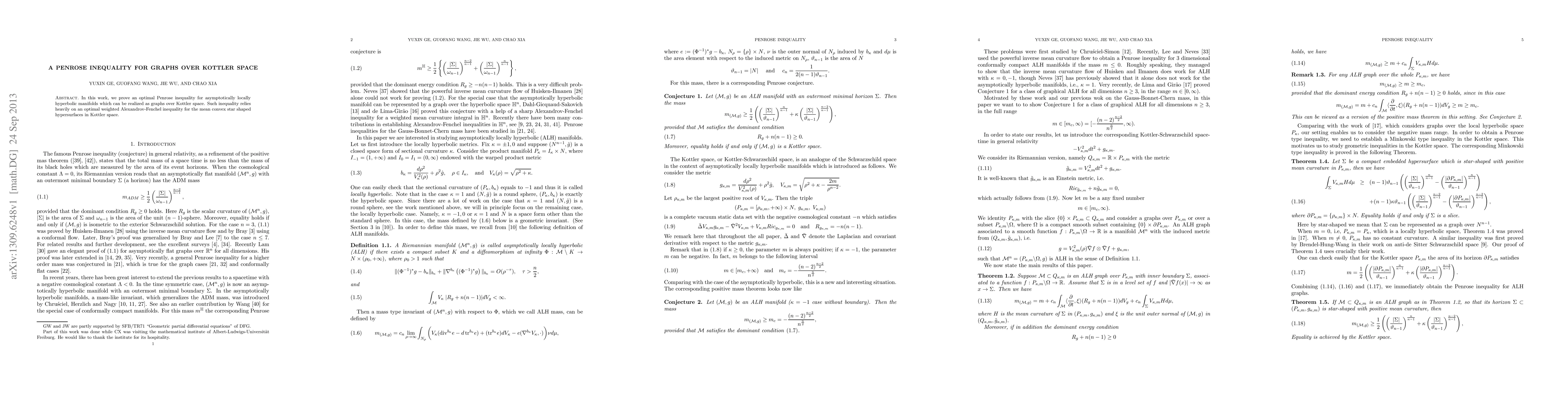 Researchers prove an optimal Penrose inequality for graphs over Kottler space, which can be realized as asymptotically locally hyperbolic manifolds, with a key reliance on an optimal weighted Alexandrov-Fenchel inequality.