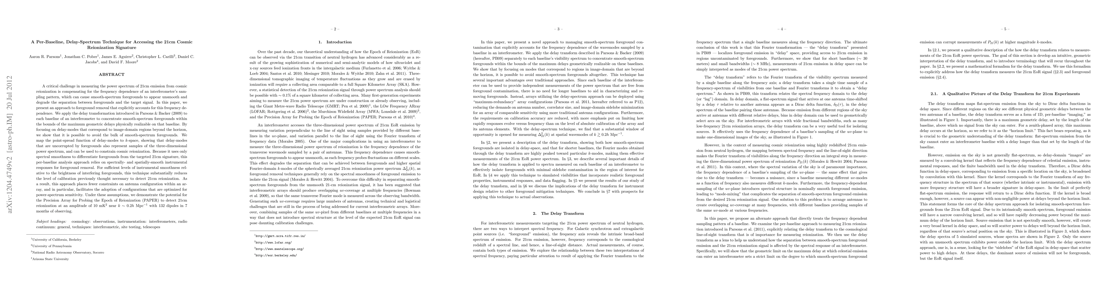 A critical challenge in measuring the power spectrum of 21cm emission from cosmic reionization is compensating for the frequency dependence of an interferometer's sampling pattern, which can cause smooth-spectrum foregrounds to appear unsmooth and degrade the separation between foregrounds and the target signal. In this paper, we present an approach to foreground removal that explicitly accounts for this frequency dependence. We apply the delay transformation introduced in Parsons & Backer (2009) to each baseline of an interferometer to concentrate smooth-spectrum foregrounds within the bounds of the maximum geometric delays physically realizable on that baseline. By focusing on delay-modes that correspond to image-domain regions beyond the horizon, we show that it is possible to avoid the bulk of smooth-spectrum foregrounds. We map the point-spread function of delay-modes to k-space, showing that delay-modes that are uncorrupted by foregrounds also represent samples of the three-dimensional power spectrum, and can be used to constrain cosmic reionization. Because it uses only spectral smoothness to differentiate foregrounds from the targeted 21cm signature, this per-baseline analysis approach relies on spectrally- and spatially-smooth instrumental responses for foreground removal. For sufficient levels of instrumental smoothness relative to interfering foregrounds, this technique substantially reduces the level of calibration previously thought necessary to detect 21cm reionization. As a result, this approach places fewer constraints on antenna configuration within an array, facilitating the adoption of configurations optimized for power-spectrum sensitivity. Under these assumptions, we demonstrate the potential for PAPER to detect 21cm reionization at an amplitude of 10 mK^2 near k~0.2h Mpc^-1 with 132 dipoles in 7 months of observing.