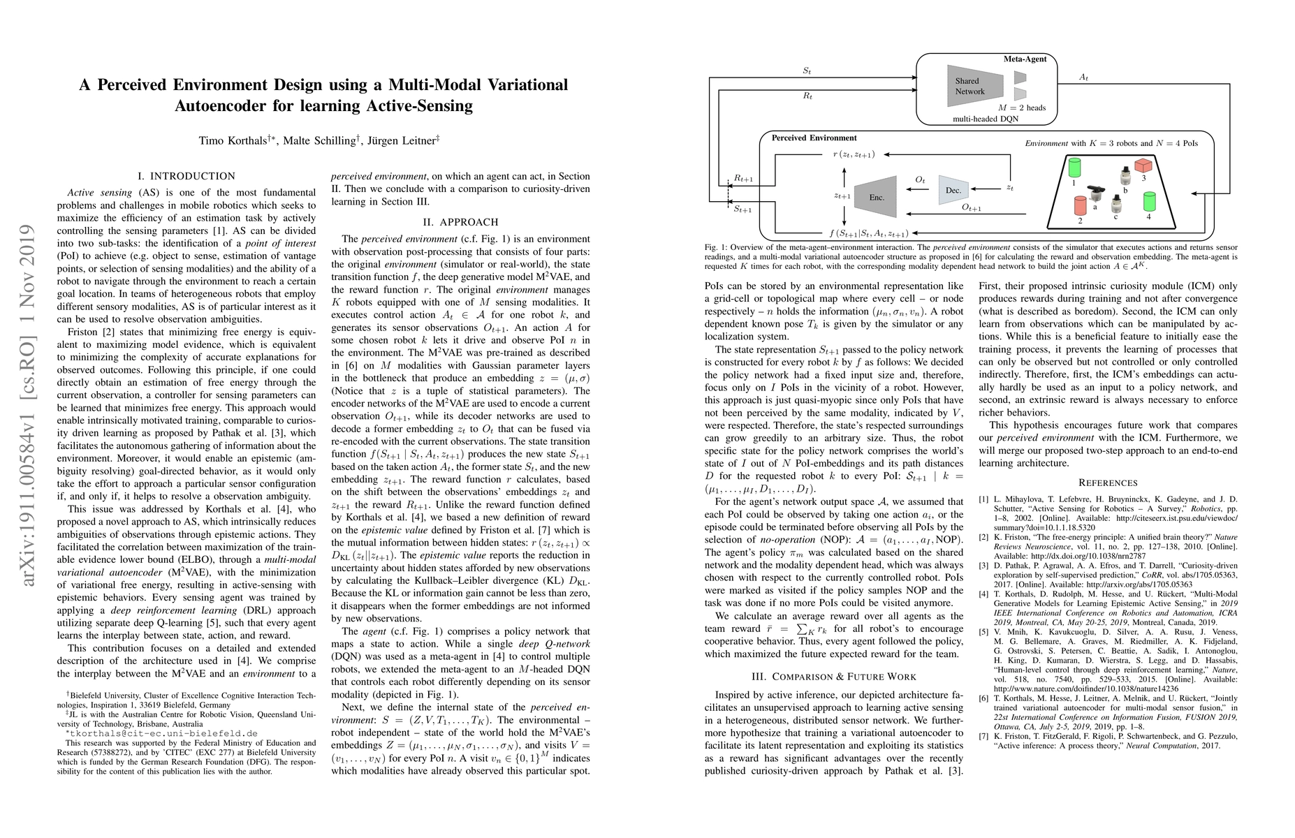 This contribution comprises the interplay between a multi-modal variational autoencoder and an environment to a perceived environment, on which an agent can act. Furthermore, we conclude our work with a comparison to curiosity-driven learning.