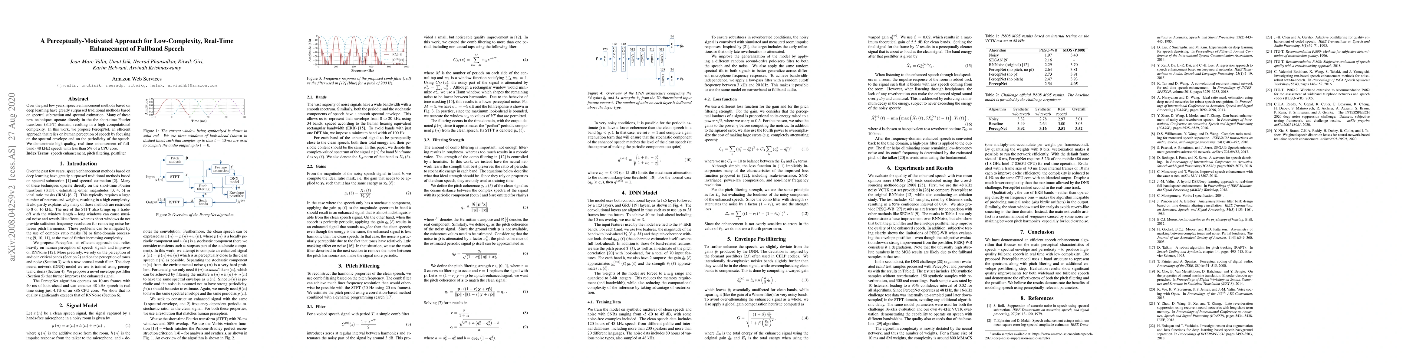 This paper introduces PercepNet, a low-complexity, real-time speech enhancement method based on deep learning that leverages human perception of speech. It achieves high-quality enhancement with minimal computational resources, operating efficiently in the short-time Fourier transform domain.