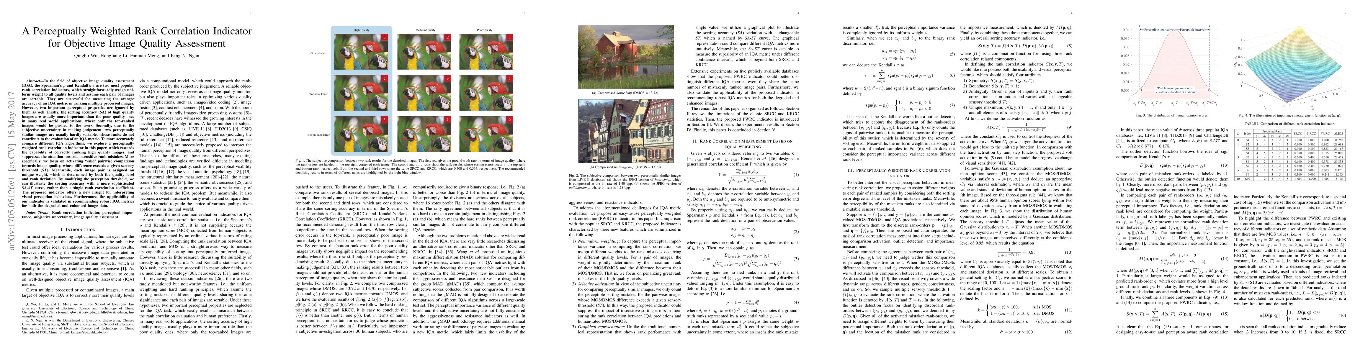 In the field of objective image quality assessment (IQA), the Spearman's $\rho$ and Kendall's $\tau$ are two most popular rank correlation indicators, which straightforwardly assign uniform weight to all quality levels and assume each pair of images are sortable. They are successful for measuring the average accuracy of an IQA metric in ranking multiple processed images. However, two important perceptual properties are ignored by them as well. Firstly, the sorting accuracy (SA) of high quality images are usually more important than the poor quality ones in many real world applications, where only the top-ranked images would be pushed to the users. Secondly, due to the subjective uncertainty in making judgement, two perceptually similar images are usually hardly sortable, whose ranks do not contribute to the evaluation of an IQA metric. To more accurately compare different IQA algorithms, we explore a perceptually weighted rank correlation indicator in this paper, which rewards the capability of correctly ranking high quality images, and suppresses the attention towards insensitive rank mistakes. More specifically, we focus on activating `valid' pairwise comparison towards image quality, whose difference exceeds a given sensory threshold (ST). Meanwhile, each image pair is assigned an unique weight, which is determined by both the quality level and rank deviation. By modifying the perception threshold, we can illustrate the sorting accuracy with a more sophisticated SA-ST curve, rather than a single rank correlation coefficient. The proposed indicator offers a new insight for interpreting visual perception behaviors. Furthermore, the applicability of our indicator is validated in recommending robust IQA metrics for both the degraded and enhanced image data.