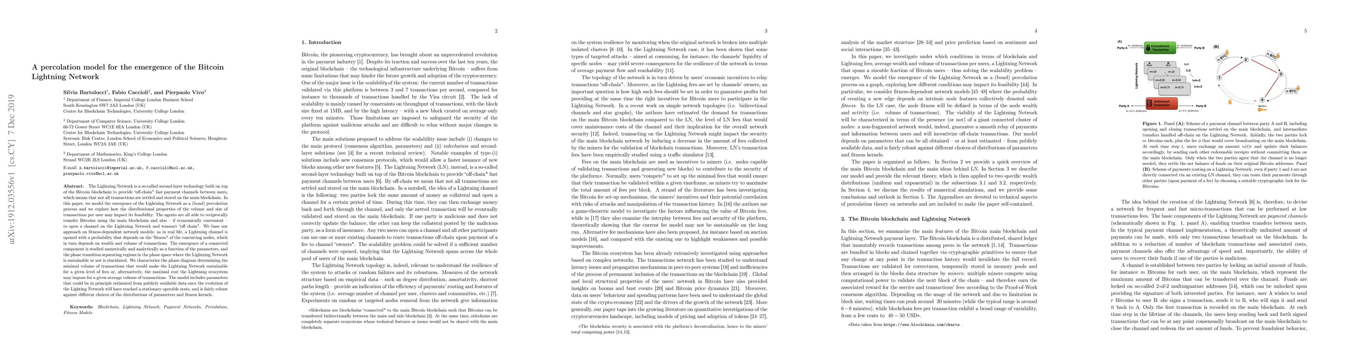 The paper introduces a percolation model for understanding the emergence and sustainability of the Bitcoin Lightning Network, incorporating node fitness based on wealth and transaction volume.