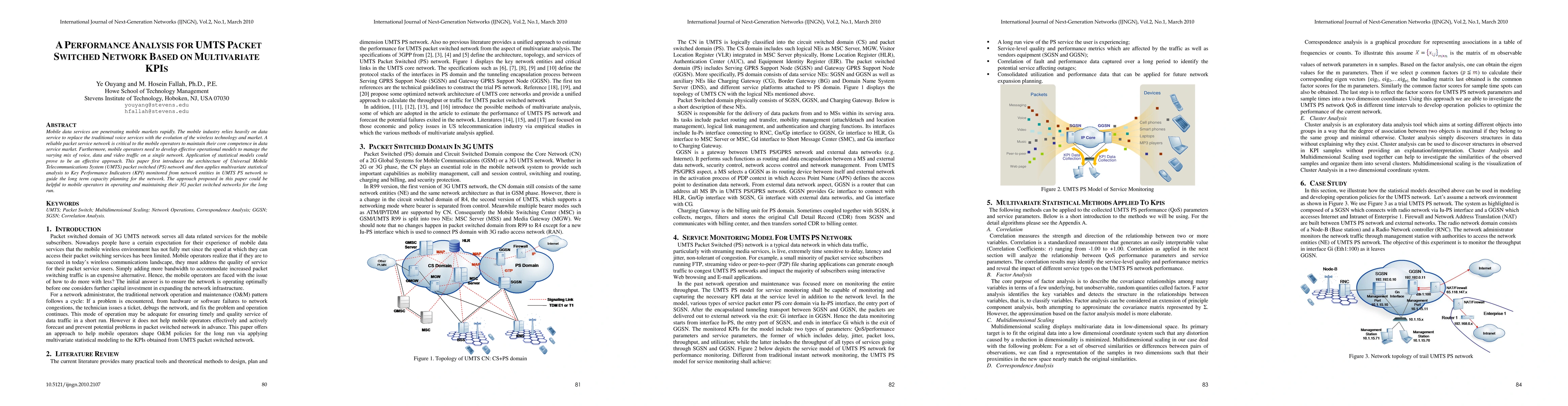 Mobile data services are penetrating mobile markets rapidly. The mobile industry relies heavily on data service to replace the traditional voice services with the evolution of the wireless technology and market. A reliable packet service network is critical to the mobile operators to maintain their core competence in data service market. Furthermore, mobile operators need to develop effective operational models to manage the varying mix of voice, data and video traffic on a single network. Application of statistical models could prove to be an effective approach. This paper first introduces the architecture of Universal Mobile Telecommunications System (UMTS) packet switched (PS) network and then applies multivariate statistical analysis to Key Performance Indicators (KPI) monitored from network entities in UMTS PS network to guide the long term capacity planning for the network. The approach proposed in this paper could be helpful to mobile operators in operating and maintaining their 3G packet switched networks for the long run.