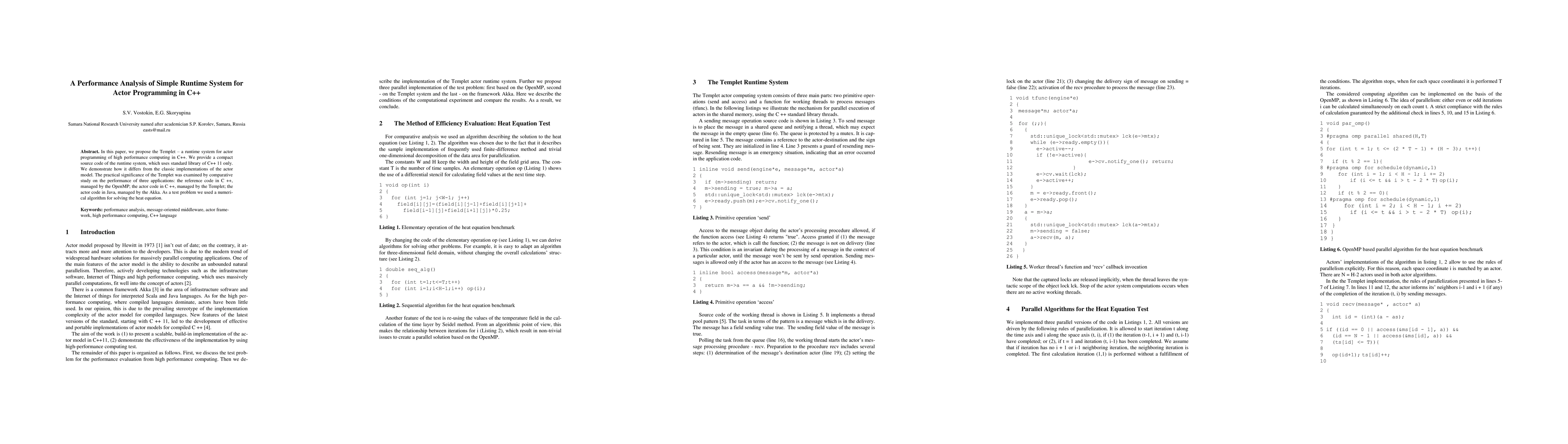 This paper introduces Templet, a lightweight C++ runtime system for actor programming, contrasting it with traditional implementations. Performance analysis through comparative studies on three applications, including a C++ OpenMP reference, a Templet-managed C++ actor code, and an Akka-managed Java actor code, demonstrates its practical significance using a heat equation solver.