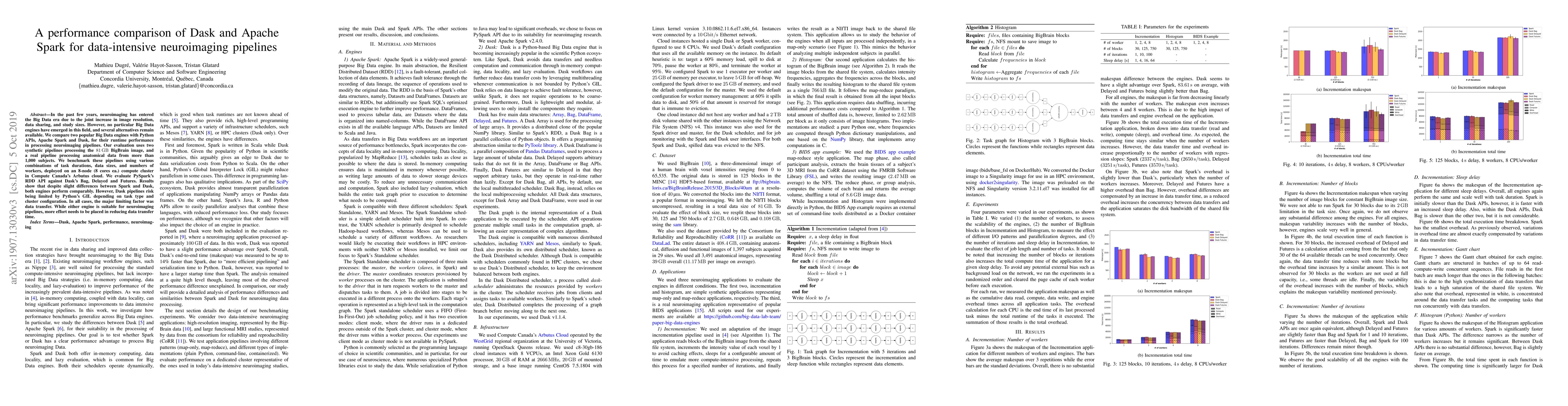 This study compares the performance of Apache Spark and Dask in processing neuroimaging pipelines, finding both engines perform comparably but highlighting that data transfer is the major limiting factor. Dask may be constrained by Python's GIL depending on task type and cluster configuration.