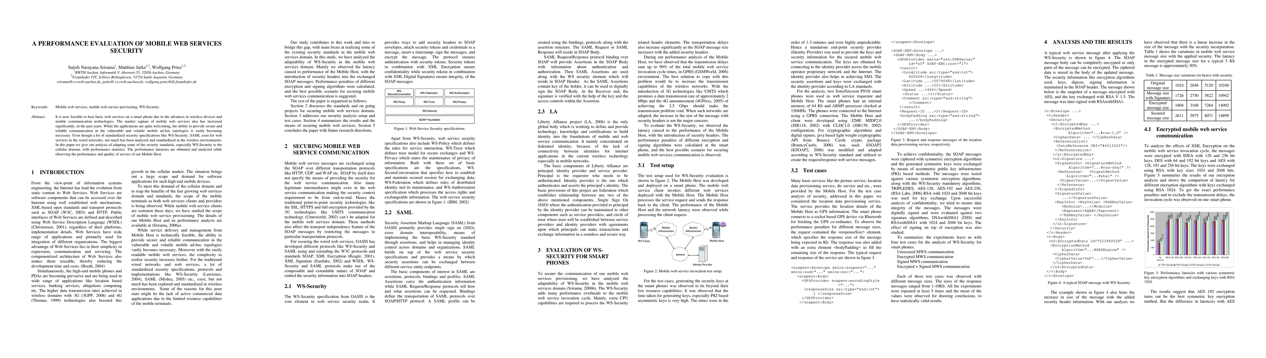 This paper evaluates the adaptation of web services security standards, particularly WS-Security, to mobile environments, analyzing performance latencies and the impact on mobile host quality of service in cellular networks. The study aims to address the security challenges posed by mobile ad-hoc topologies.