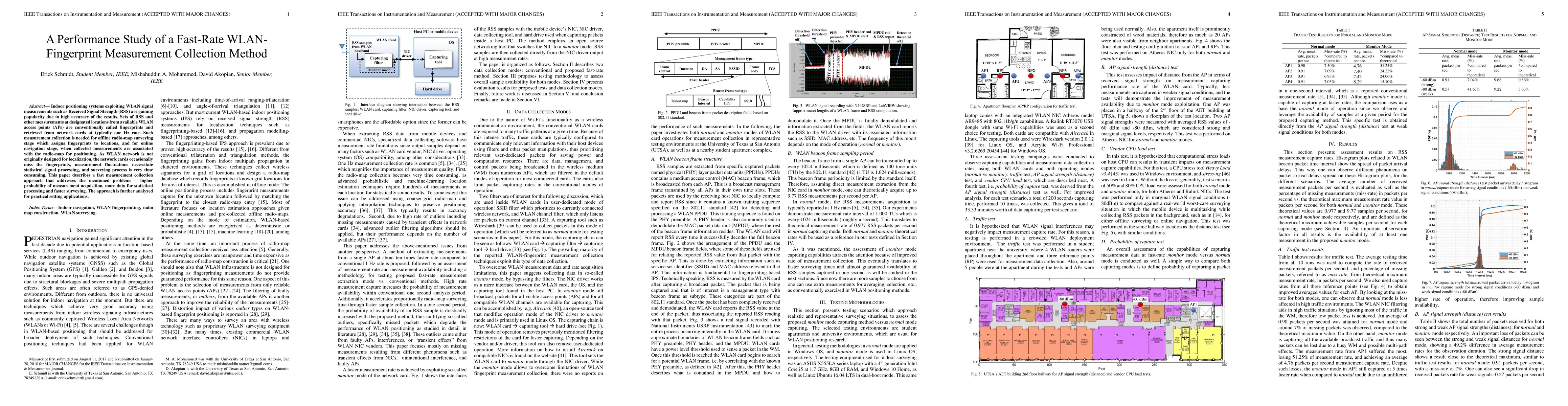 This paper proposes a fast-rate WLAN fingerprint measurement collection method to improve indoor positioning accuracy by addressing issues like missed measurements, fluctuations, and time-consuming surveying. The new approach aims for higher acquisition rates, more data for processing, and faster radio-map surveying.