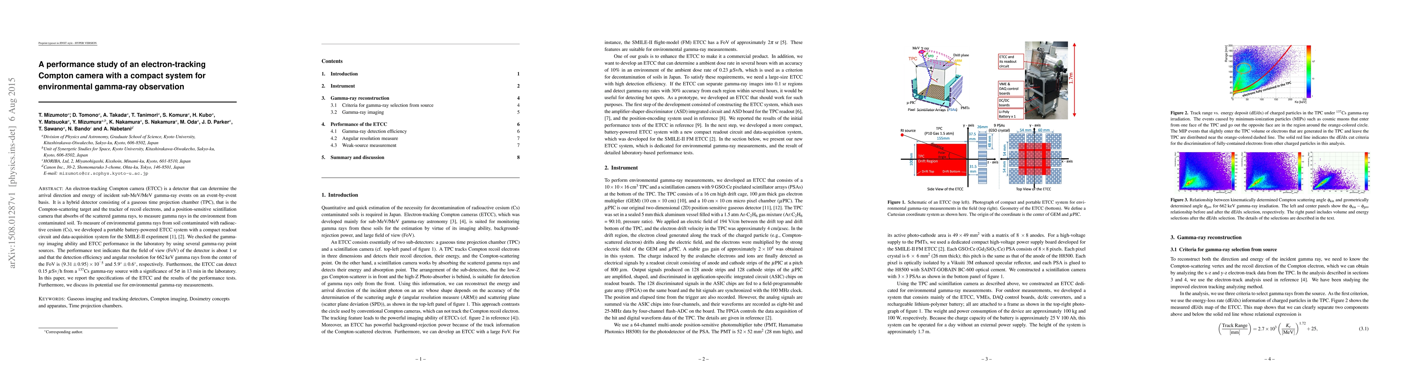 An electron-tracking Compton camera (ETCC) is a detector that can determine the arrival direction and energy of incident sub-MeV/MeV gamma-ray events on an event-by-event basis. It is a hybrid detector consisting of a gaseous time projection chamber (TPC), that is the Compton-scattering target and the tracker of recoil electrons, and a position-sensitive scintillation camera that absorbs of the scattered gamma rays, to measure gamma rays in the environment from contaminated soil. To measure of environmental gamma rays from soil contaminated with radioactive cesium (Cs), we developed a portable battery-powered ETCC system with a compact readout circuit and data-acquisition system for the SMILE-II experiment. We checked the gamma-ray imaging ability and ETCC performance in the laboratory by using several gamma-ray point sources. The performance test indicates that the field of view (FoV) of the detector is about 1$\;$sr and that the detection efficiency and angular resolution for 662$\;$keV gamma rays from the center of the FoV is $(9.31 \pm 0.95) \times 10^{^-5}$ and $5.9^{\circ} \pm 0.6^{\circ}$, respectively. Furthermore, the ETCC can detect 0.15$\;\mu\rm{Sv/h}$ from a $^{137}$Cs gamma-ray source with a significance of 5$\sigma$ in 13 min in the laboratory. In this paper, we report the specifications of the ETCC and the results of the performance tests. Furthermore, we discuss its potential use for environmental gamma-ray measurements.
