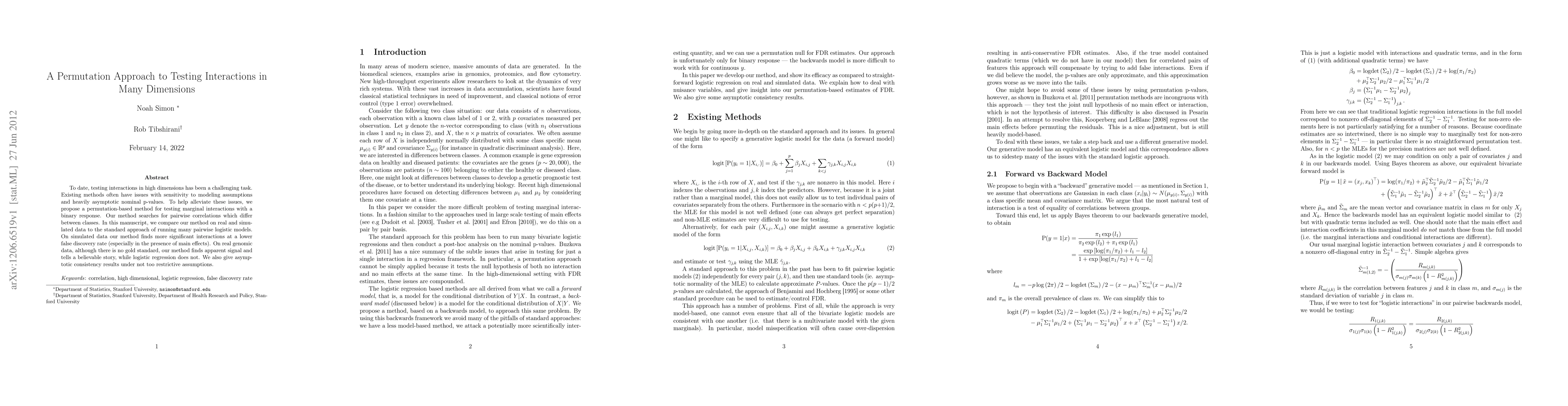 The paper proposes a permutation-based method, TMIcor, for testing marginal interactions with a binary response in high dimensions, addressing issues of sensitivity to modeling assumptions and nominal p-values in existing methods.