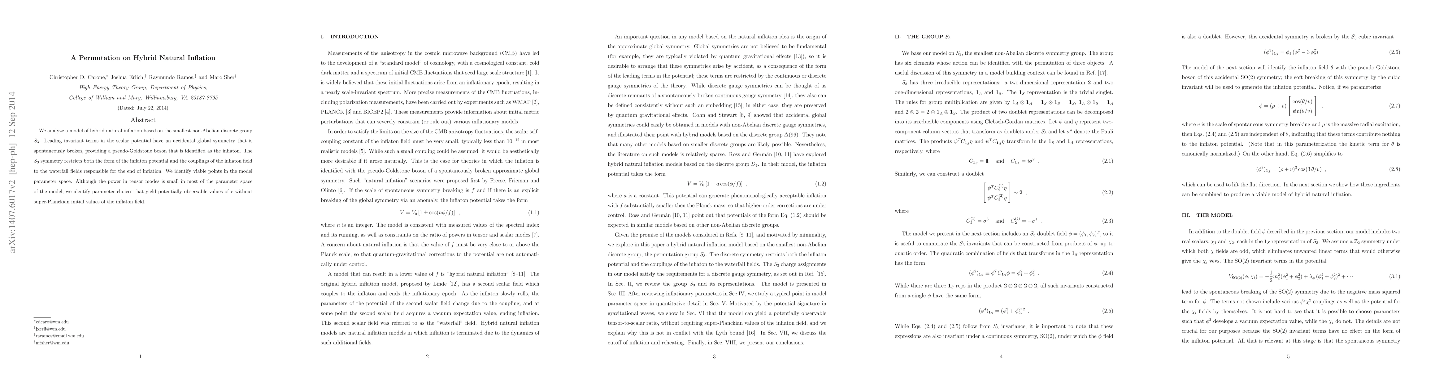This paper explores a hybrid natural inflation model using the S_3 symmetry, identifying a pseudo-Goldstone boson as the inflaton. It finds viable parameter regions that allow for observable tensor mode power without requiring super-Planckian initial inflaton values.