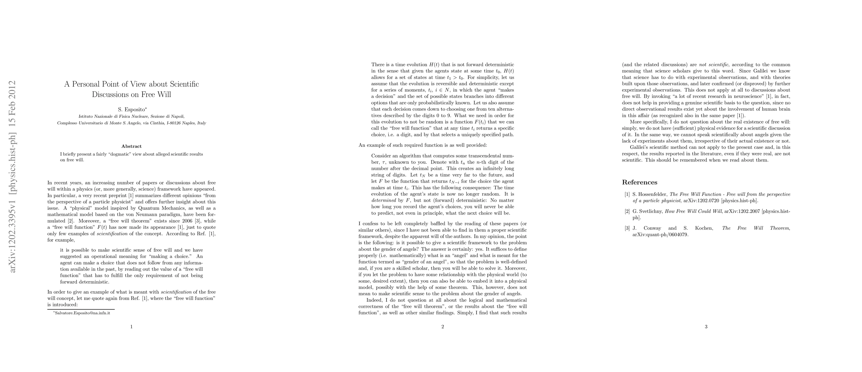 The author shares their perspective on the relationship between science and free will, without delving into empirical research or data.