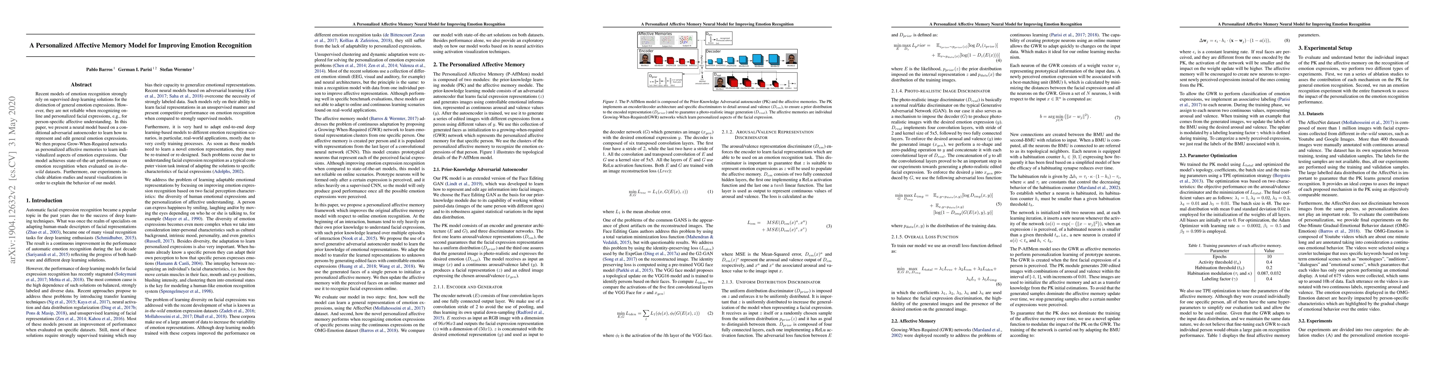 This paper introduces a neural model using conditional adversarial autoencoders and Grow-When-Required networks to enhance personalized emotion recognition from facial expressions. The model achieves superior performance on real-world datasets and includes ablation studies and visualizations to explain its functioning.