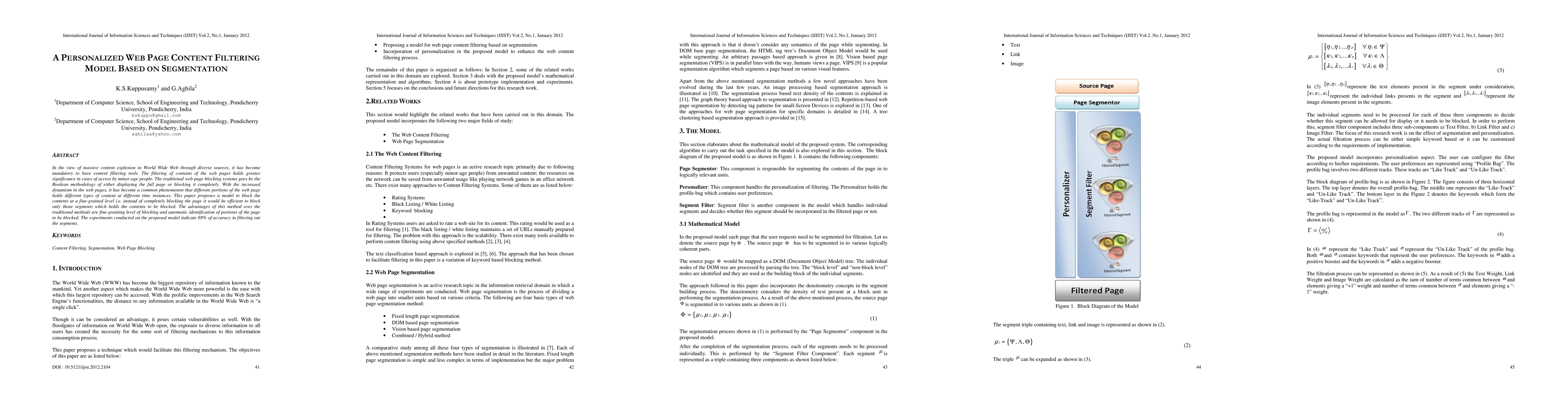 This paper proposes a personalized web page content filtering model that segments web pages to block only specific content segments rather than entire pages, enhancing accuracy and efficiency, especially for minors. Experiments show an 88% accuracy rate in segment-level filtering.