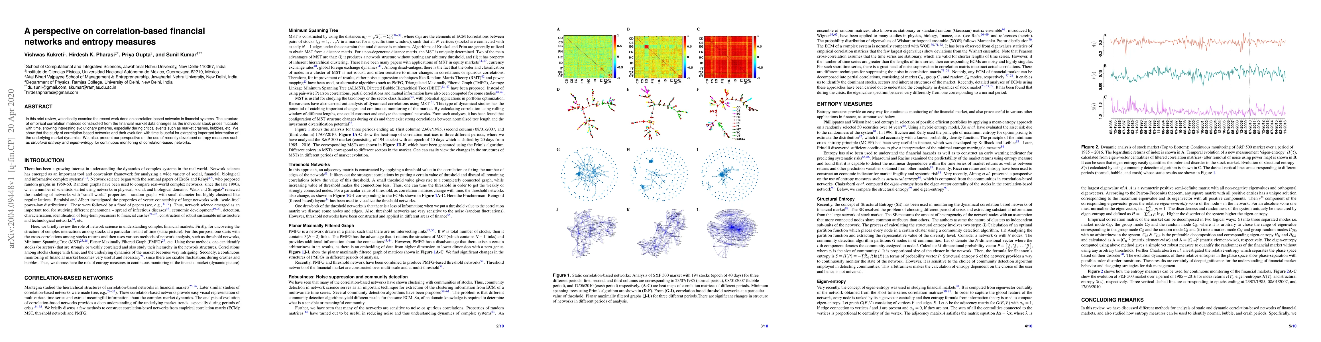 In this brief review, we critically examine the recent work done on correlation-based networks in financial systems. The structure of empirical correlation matrices constructed from the financial market data changes as the individual stock prices fluctuate with time, showing interesting evolutionary patterns, especially during critical events such as market crashes, bubbles, etc. We show that the study of correlation-based networks and their evolution with time is useful for extracting important information of the underlying market dynamics. We, also, present our perspective on the use of recently developed entropy measures such as structural entropy and eigen-entropy for continuous monitoring of correlation-based networks.