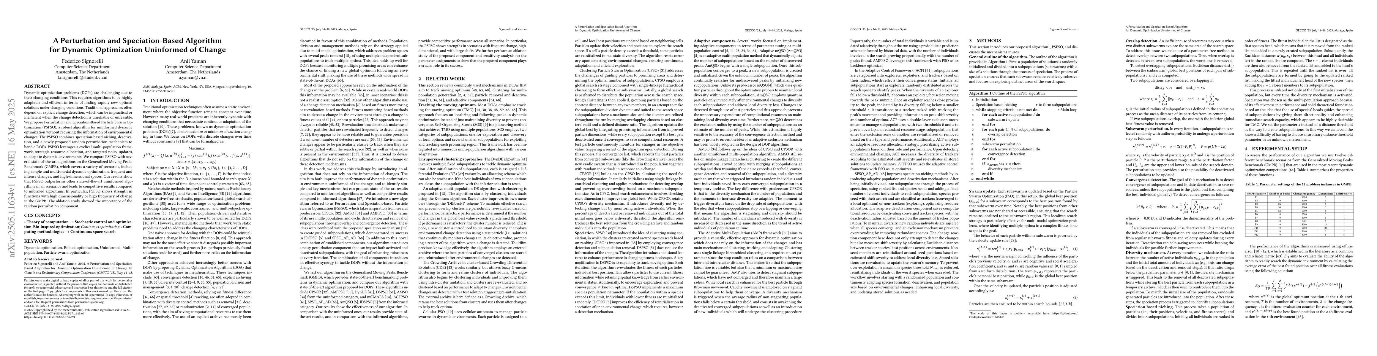 The research introduces Perturbation and Speciation-Based Particle Swarm Optimization (PSPSO), a novel algorithm designed for dynamic optimization without explicit change detection information.
