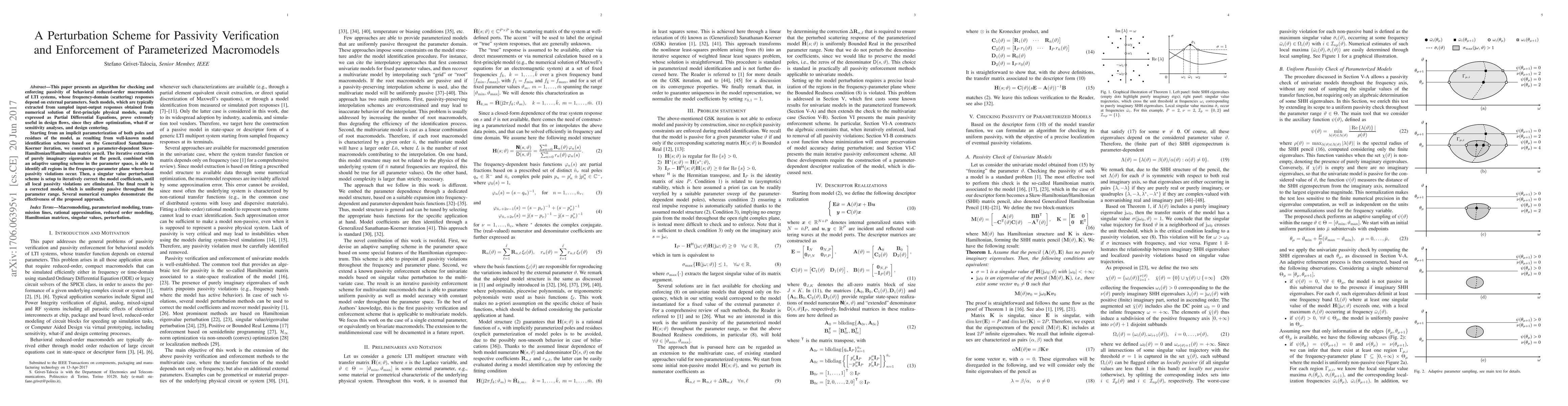 Researchers developed a method to verify and enforce passivity in macromodels of linear systems, allowing for optimization and analysis of system design. The approach uses an adaptive sampling scheme and singular value perturbation to identify and correct passivity violations.