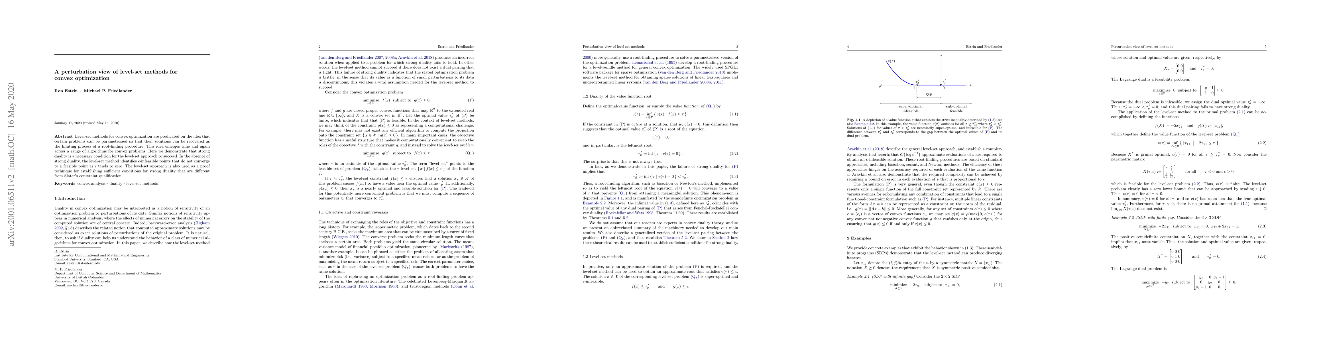 Level-set methods for convex optimization are predicated on the idea that certain problems can be parameterized so that their solutions can be recovered as the limiting process of a root-finding procedure. This idea emerges time and again across a range of algorithms for convex problems. Here we demonstrate that strong duality is a necessary condition for the level-set approach to succeed. In the absence of strong duality, the level-set method identifies $\epsilon$-infeasible points that do not converge to a feasible point as $\epsilon$ tends to zero. The level-set approach is also used as a proof technique for establishing sufficient conditions for strong duality that are different from Slater's constraint qualification.