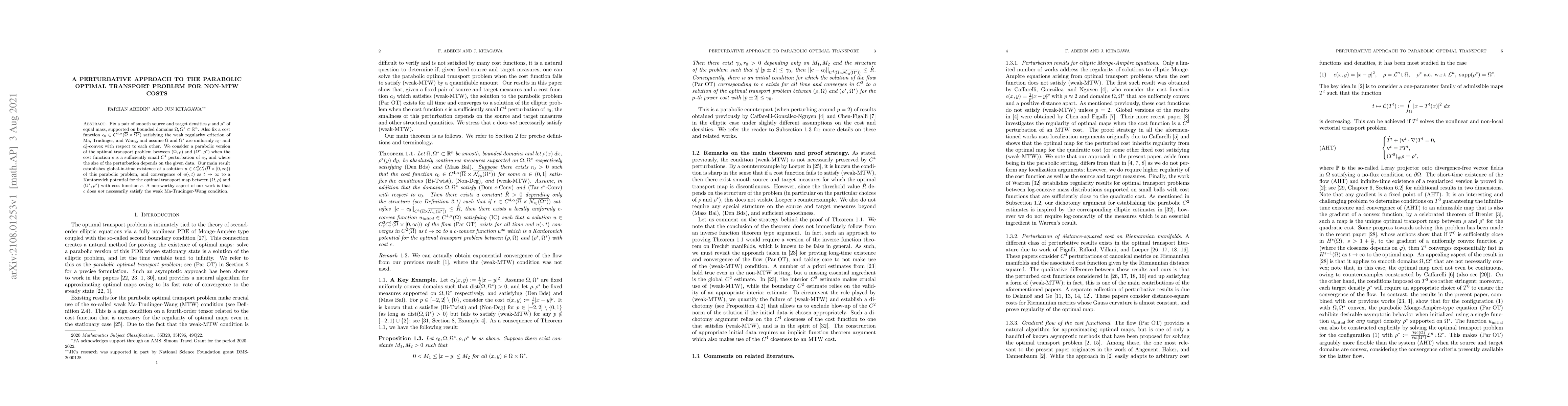 This paper investigates a perturbative approach to the parabolic optimal transport problem for cost functions that are small perturbations of a given regular cost function. It establishes global-in-time existence and convergence of a solution to a Kantorovich potential, even when the perturbation does not meet the weak Ma-Trudinger-Wang condition.
