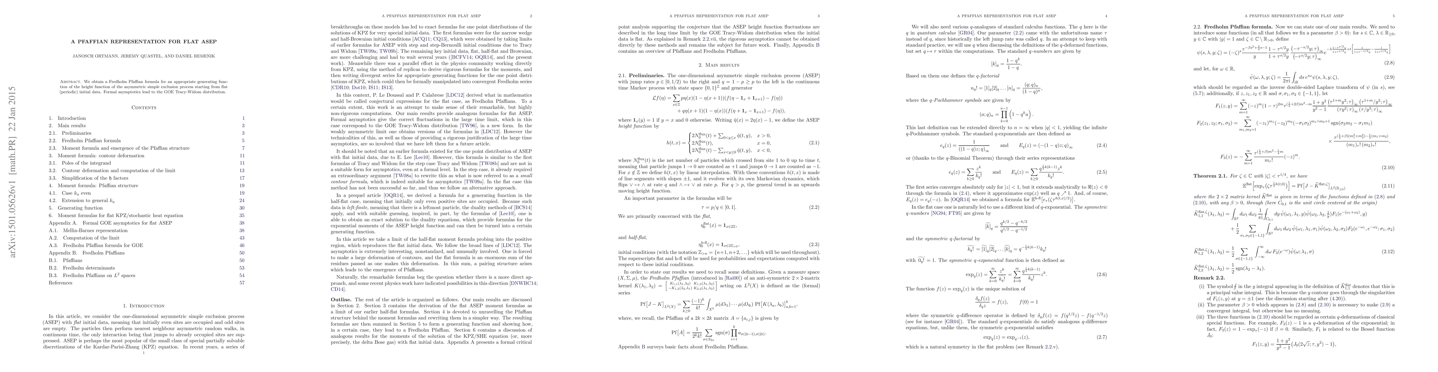 We obtain a Fredholm Pfaffian formula for an appropriate generating function of the height function of the asymmetric simple exclusion process starting from flat (periodic) initial data. Formal asymptotics lead to the GOE Tracy-Widom distribution.