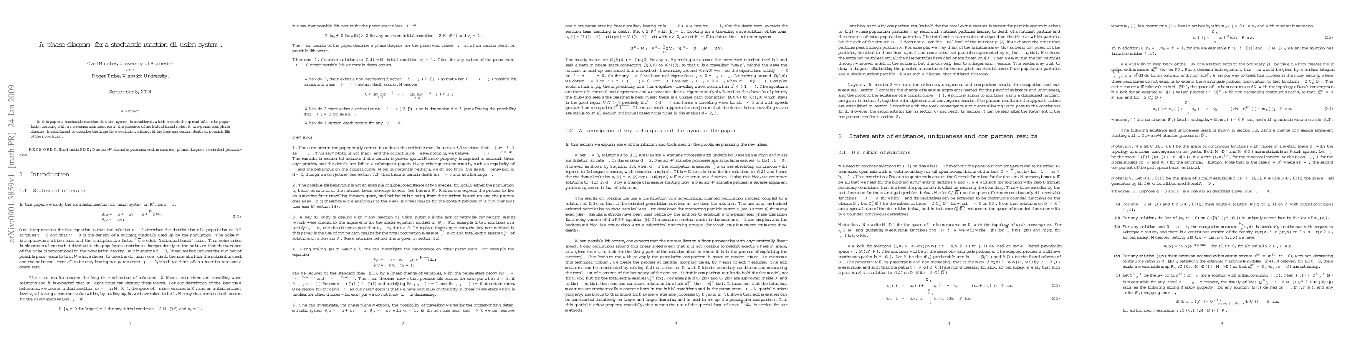 In this paper a stochastic reaction diffusion system is considered, which models the spread of a finite population reacting with a non-renewable resource in the presence of individual based noise. A two-parameter phase diagram is established to describe the large time evolution, distinguishing between certain death or possible life of the population.