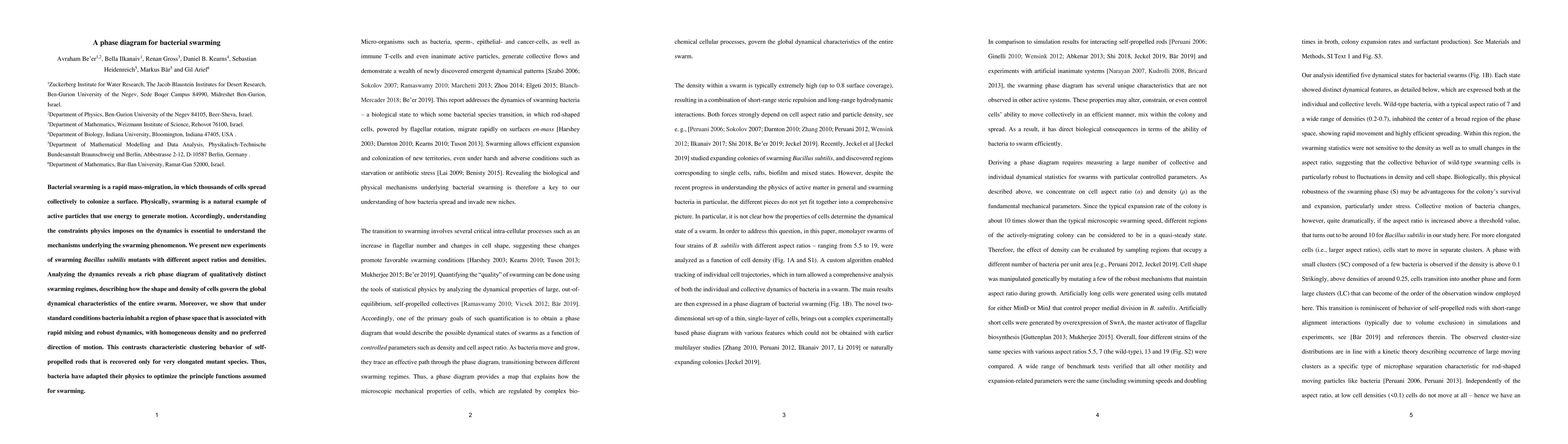 Researchers studied bacterial swarming, discovering a phase diagram that shows how shape and density affect swarm dynamics. They found bacteria inhabit a region of phase space associated with rapid mixing and robust dynamics, contrasting with self-propelled rods that cluster for elongated species.