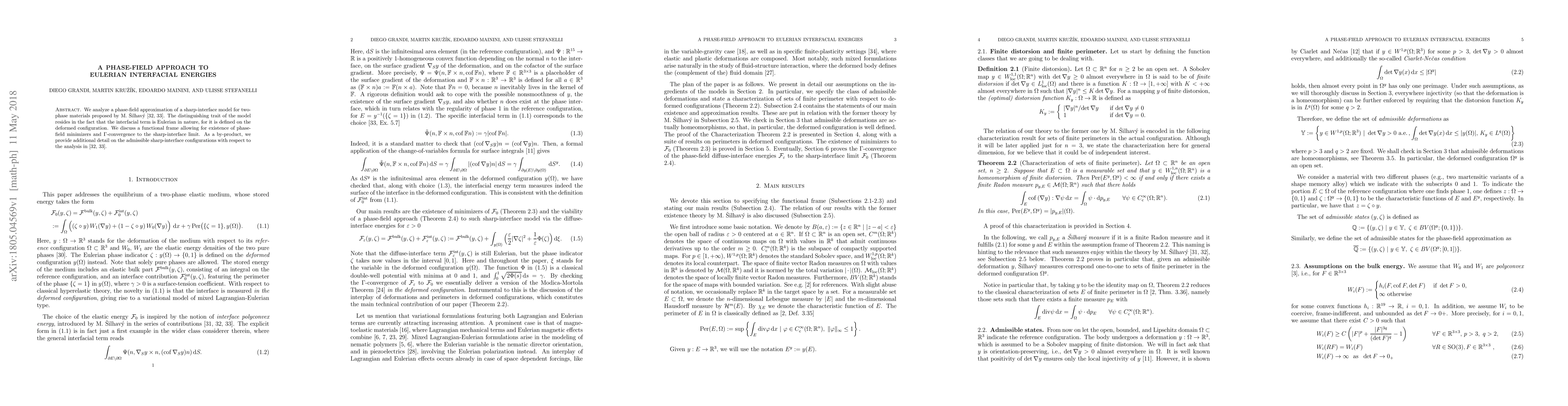 We analyze a phase-field approximation of a sharp-interface model for two- phase materials proposed by M. Silhavy [32, 33]. The distinguishing trait of the model resides in the fact that the interfacial term is Eulerian in nature, for it is defined on the deformed configuration. We discuss a functional frame allowing for existence of phase- field minimizers and {\Gamma}-convergence to the sharp-interface limit. As a by-product, we provide additional detail on the admissible sharp-interface configurations with respect to the analysis in [32, 33].