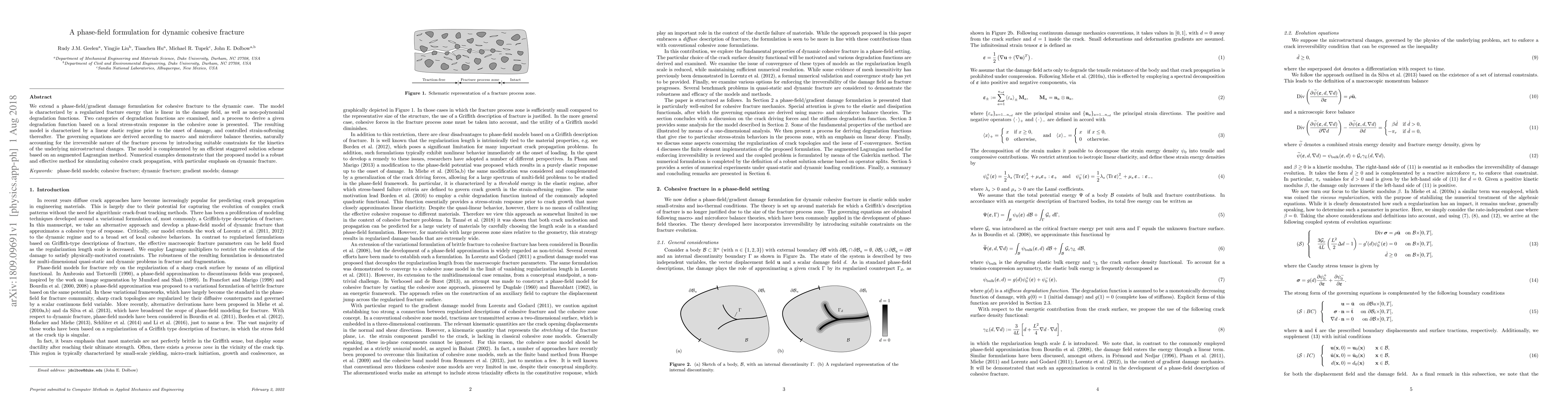 A phase-field model was used to simulate dynamic brittle fracture, incorporating a gradient damage model for accurate crack propagation.
