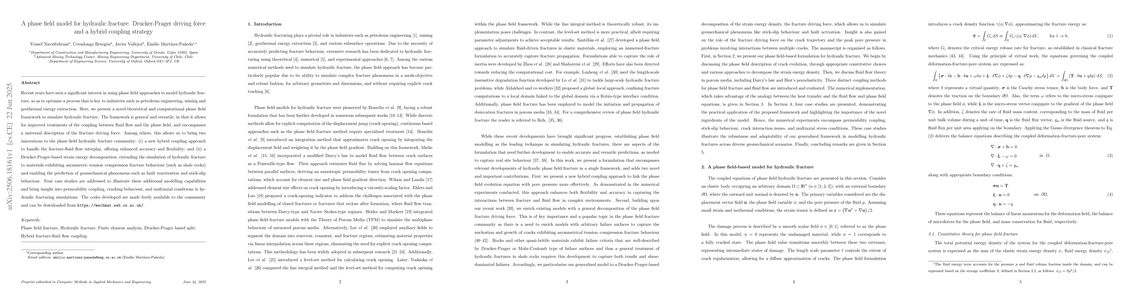 This research introduces a new phase field model for hydraulic fracture, featuring a hybrid coupling strategy and Drucker-Prager driving force. It enhances accuracy and flexibility in simulating fracture-fluid flow interplay, particularly for materials with asymmetric tension-compression behavior, like shale rocks, enabling prediction of phenomena like fault reactivation and stick-slip behavior.