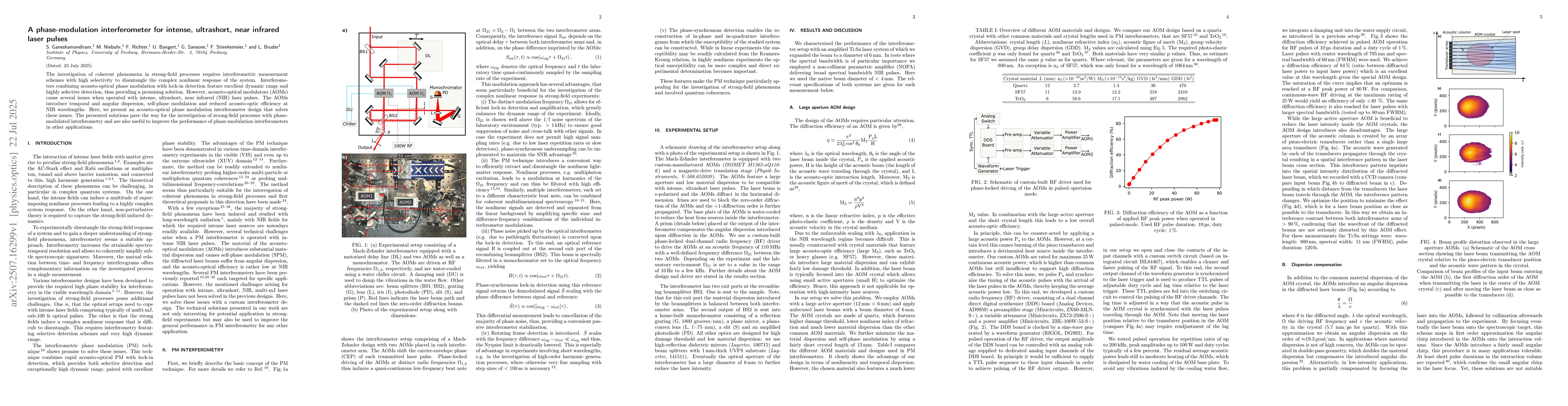 The research presents a phase-modulation interferometer design for intense, ultrashort, near-infrared (NIR) laser pulses, addressing issues like temporal and angular dispersion, self-phase modulation, and reduced acousto-optic efficiency at NIR wavelengths. The design employs custom-built radio frequency (RF) drivers with dual-channel direct digital synthesizer (DDS) boards, preamplifier, variable attenuator, and power amplifier.