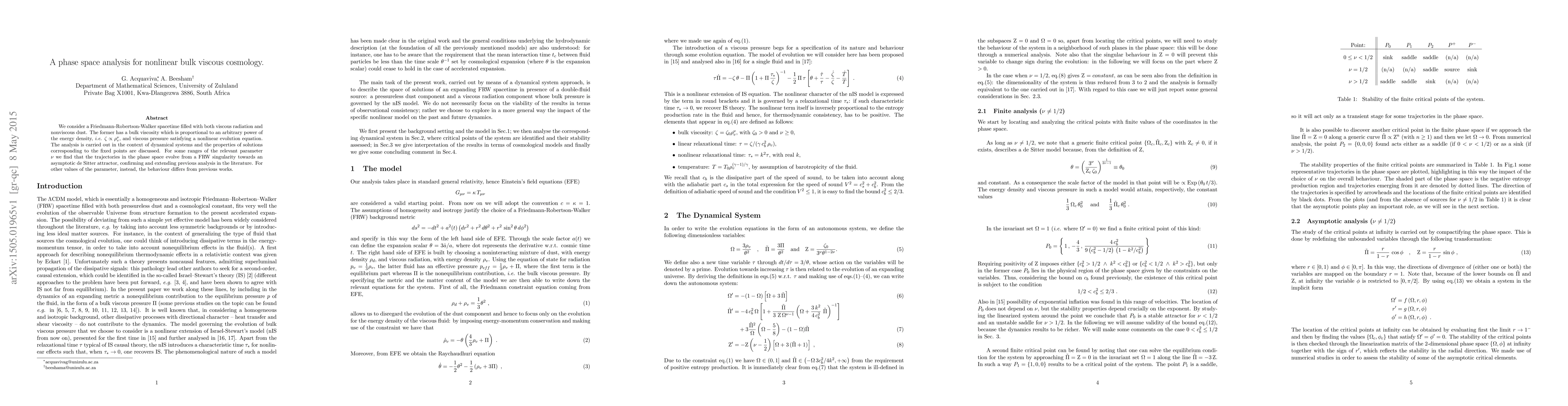 We consider a Friedmann-Robertson-Walker spacetime filled with both viscous radiation and nonviscous dust. The former has a bulk viscosity which is proportional to an arbitrary power of the energy density, i.e. $\zeta \propto \rho_v^{\nu}$, and viscous pressure satisfying a nonlinear evolution equation. The analysis is carried out in the context of dynamical systems and the properties of solutions corresponding to the fixed points are discussed. For some ranges of the relevant parameter $\nu$ we find that the trajectories in the phase space evolve from a FRW singularity towards an asymptotic de Sitter attractor, confirming and extending previous analysis in the literature. For other values of the parameter, instead, the behaviour differs from previous works.