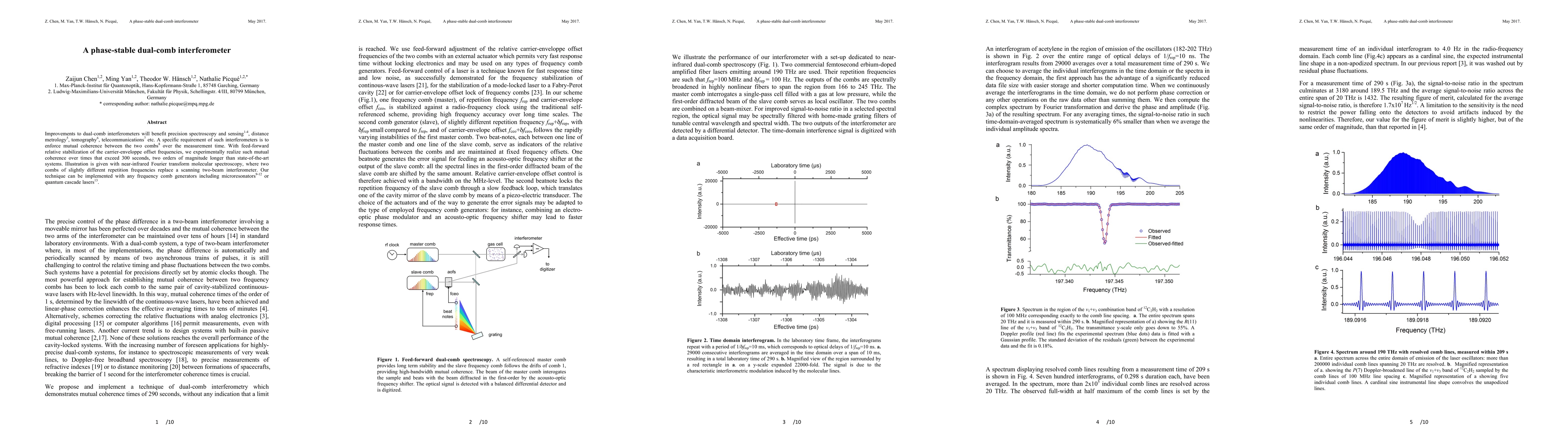 This research introduces a phase-stable dual-comb interferometer, achieving mutual coherence over 300 seconds, significantly longer than current systems. It demonstrates applications in precision spectroscopy and various metrology fields using different comb generators.
