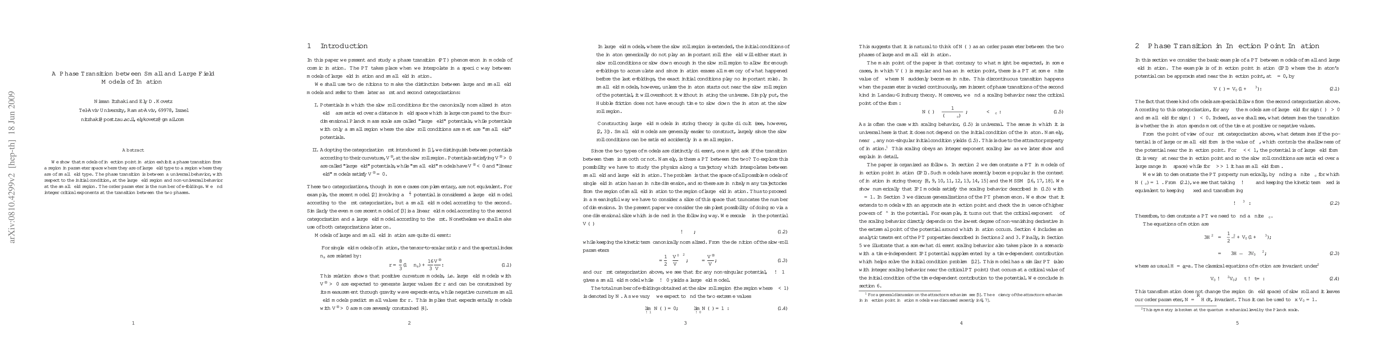 Researchers found a phase transition between large and small field models of inflation, with distinct behaviors in terms of universality and critical exponents.