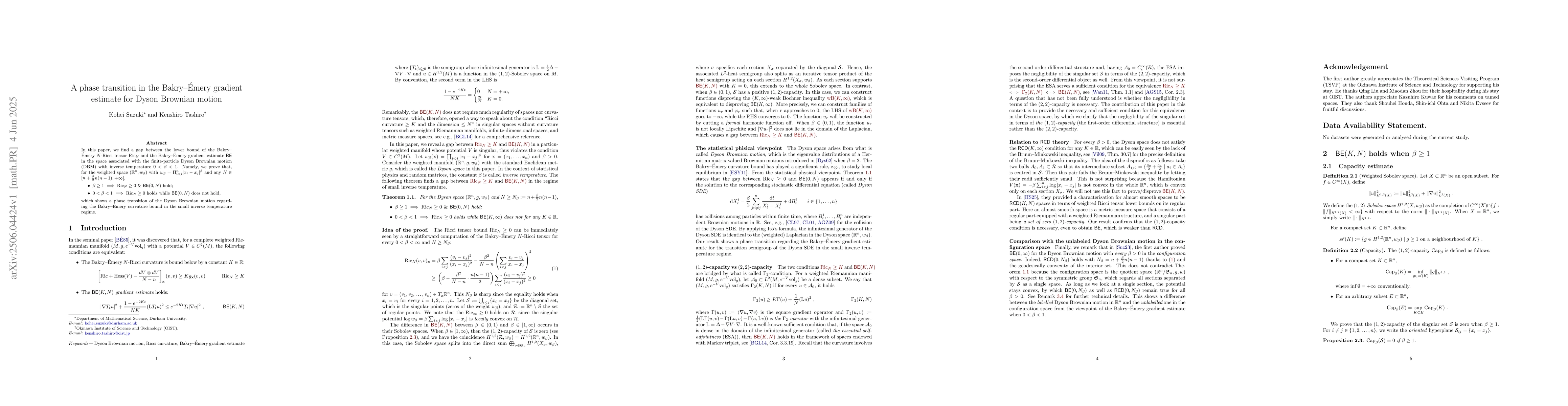 The paper proves a phase transition in the Bakry-Émery Ricci curvature and gradient estimate for Dyson Brownian motion, highlighting the critical role of inverse temperature β.