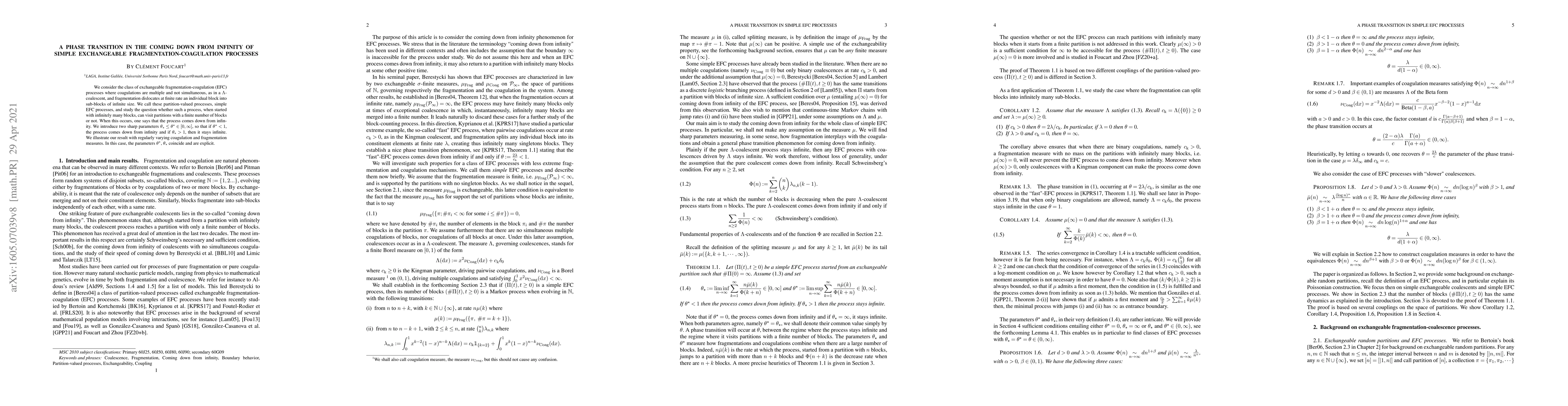 This paper investigates simple exchangeable fragmentation-coagulation processes, determining conditions under which such processes can "come down from infinity," i.e., transition from infinite to finite block states. It introduces two critical parameters that dictate this transition, showing that the process comes down if the upper parameter is less than 1 and remains infinite if the lower parameter exceeds 1.