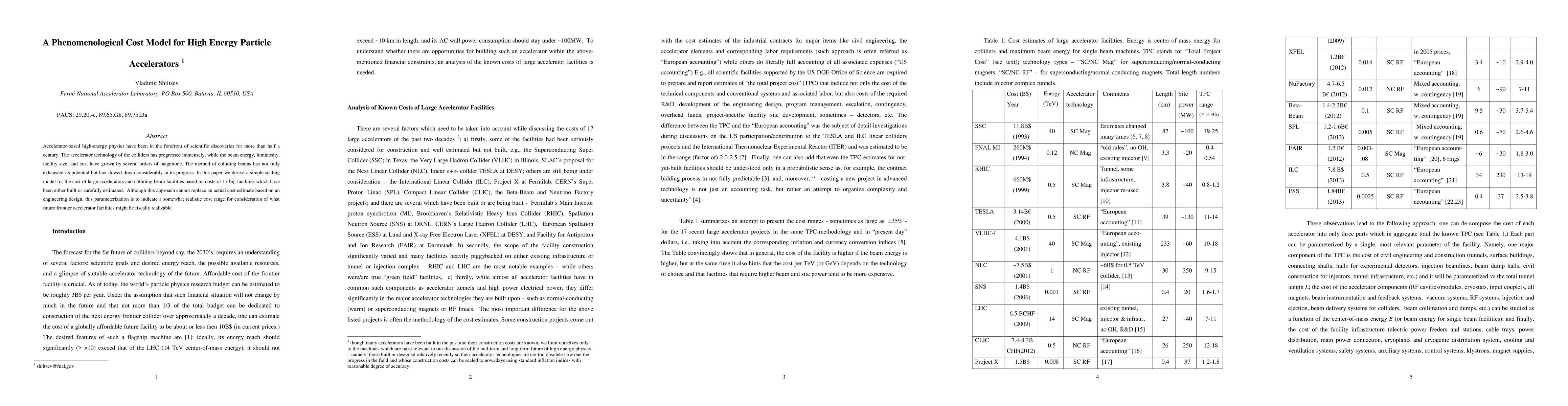 A cost model for high-energy particle accelerators is developed based on 17 existing facilities, indicating a realistic cost range for future frontier accelerator facilities. The model provides a parameterization of costs in relation to beam energy, luminosity, and facility size.