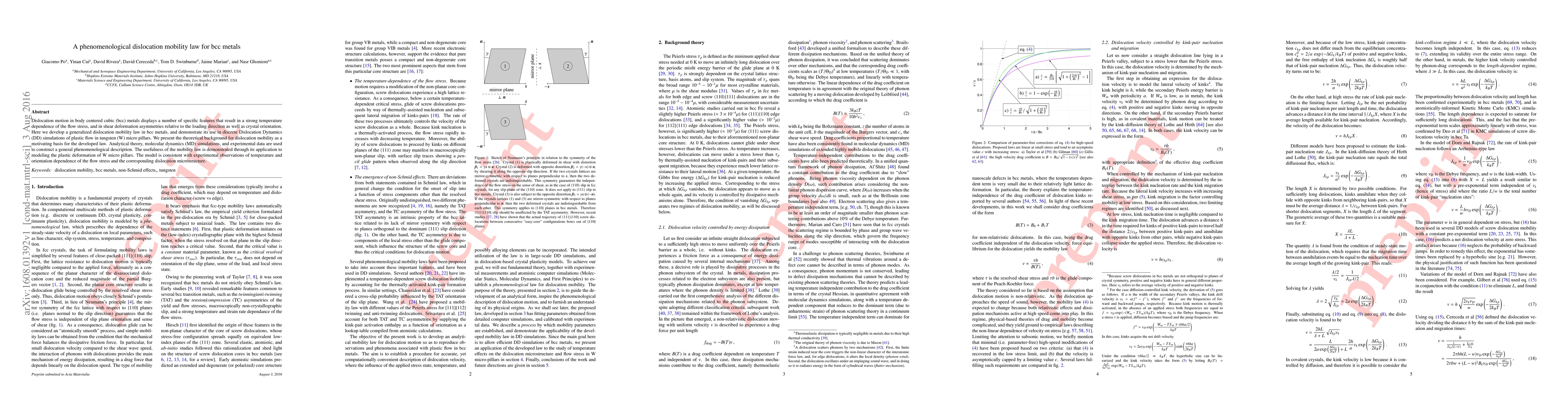 This paper develops a phenomenological dislocation mobility law for bcc metals, specifically tungsten, to explain the temperature-dependent flow stress and deformation asymmetries. The law is applied in discrete dislocation dynamics simulations, showing agreement with experimental observations.