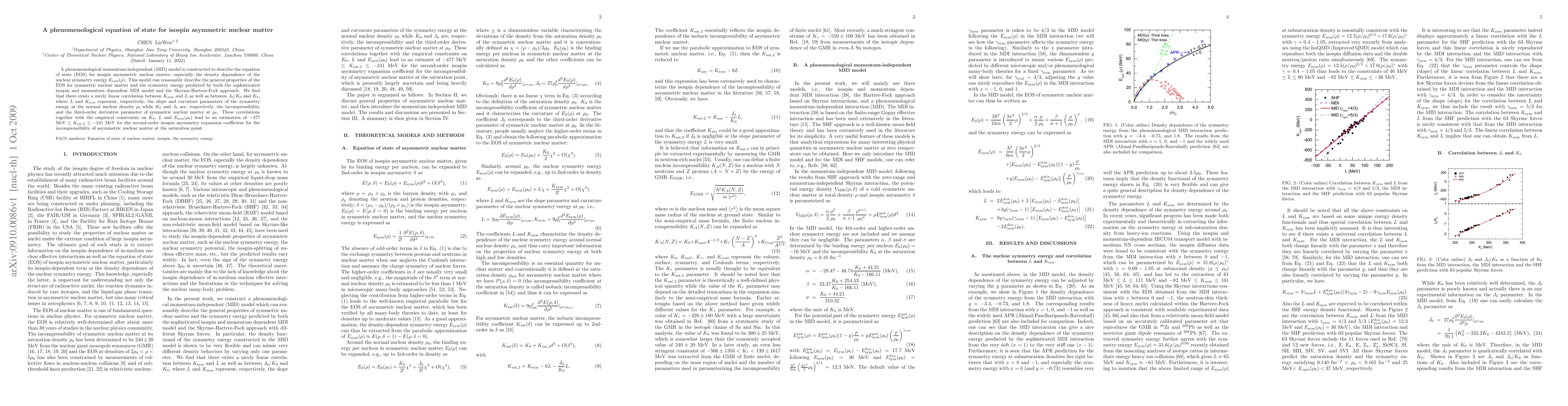 This paper constructs a phenomenological momentum-independent model to describe the equation of state for isospin asymmetric nuclear matter, focusing on the density dependence of the nuclear symmetry energy. It finds linear correlations between key parameters and estimates the second-order isospin asymmetry expansion coefficient for the incompressibility at saturation.