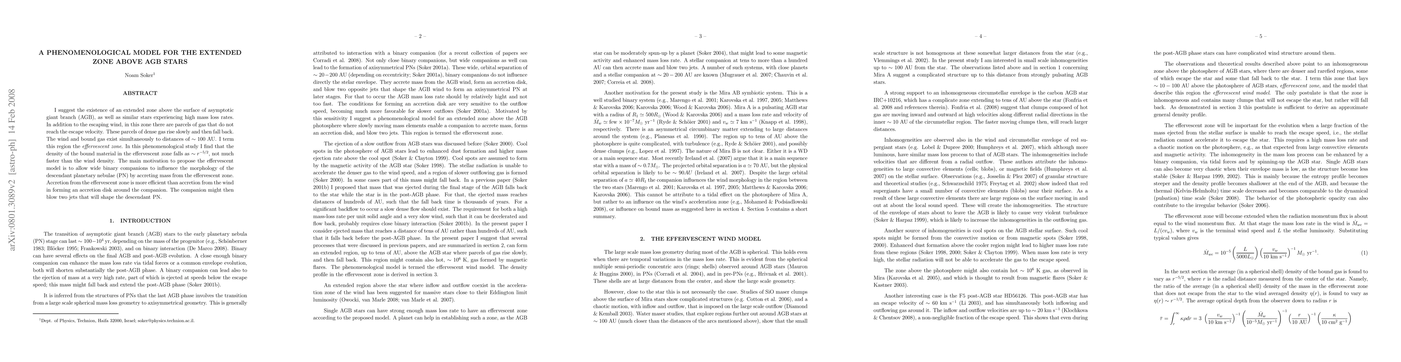 I suggest the existence of an extended zone above the surface of asymptotic giant branch (AGB), as well as similar stars experiencing high mass loss rates. In addition to the escaping wind, in this zone there are parcels of gas that do not reach the escape velocity. These parcels of dense gas rise slowly and then fall back. The wind and bound gas exist simultaneously to distances of ~100AU. I term this region the effervescent zone. In this phenomenological study I find that the density of the bound material in the effervescent zone falls as ~r^{-5/2}, not much faster than the wind density. The main motivation to propose the effervescent model is to allow wide binary companions to influence the morphology of the descendant planetary nebulae (PN) by accreting mass from the effervescent zone. Accretion from the effervescent zone is more efficient than accretion from the wind in forming an accretion disk around the companion. The companion might then blow two jets that will shape the descendant PN.
